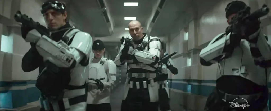 Given that the second season of Andor takes place at the height of the Galactic Empire, there is no shortage of Imperial Stormtroopers present to keep order, and most could be seen carrying the BlasTech E-11 Blaster Rifle, their standard rifle throughout the Star Wars saga. That blaster was modeled on the British Sterling submachine gun, which was likely chosen as the production of the original film occurred at Pinewood Studios outside of London. The armorers likely had ample supplies of the Sterling available at the time. Though the mock-ups featured the original folding stock, it begged the question of why it is never deployed, as it would aid in the blaster’s accuracy!