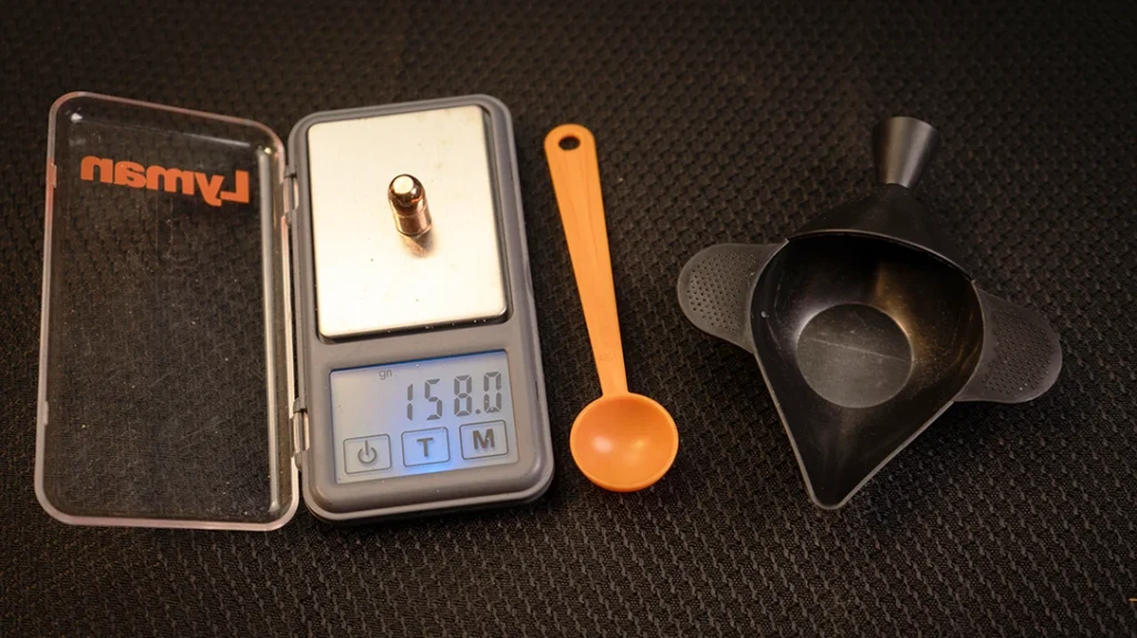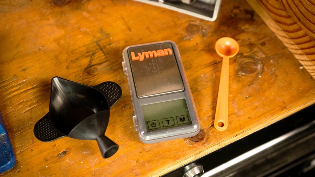 A scale, preferably digital or balance-beam, to measure powder in grains. Add a powder funnel for easier charging.