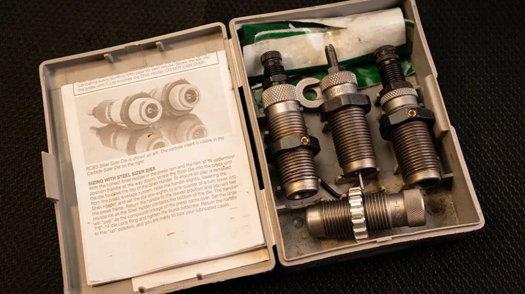 Dies specific to your cartridge, including resizing, seating, and crimping.