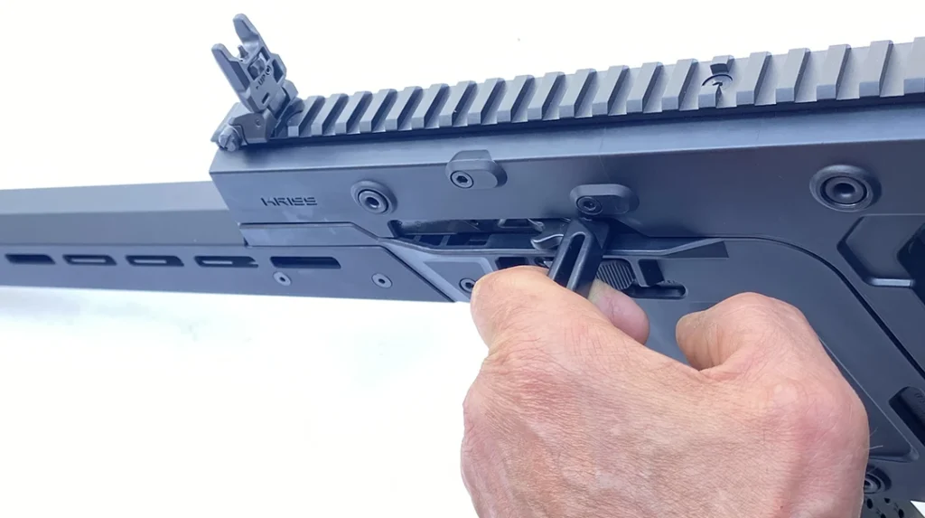 The KRISS Vector’s manual-of-arms took a little getting used to. It was mainly due to the odd, rocker style, bolt hold-open/release lever. Likewise, the curious feel of the bolt/bolt carrier assembly changing direction as I drew back the non-reciprocating charging handle also took some getting used to. The KRISS Vector Gen 3 carbine’s controls are simple enough. The ambidextrous thumb-safety levers are excellent and the improved magazine release button, now gated and moved off the front edge of the magazine well, can be reversed for left handers.