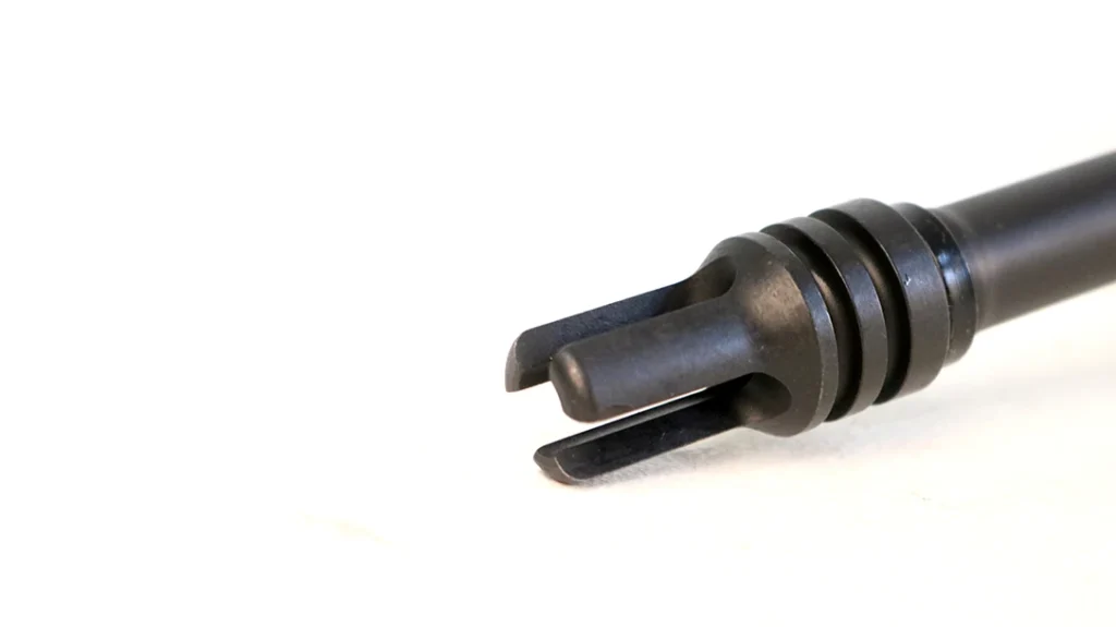 The barrels are manganese phosphate finished for a proper vintage look, and the 0.625-inch non-F marked front sight base is a dead ringer for the originals. The early-style 601 triangular charging handle is markedly smaller than the M4 version with which we are all familiar. The duckbill flash suppressor actually works better than the closed birdcage sort. However, the design was changed after Uncle Sam found out that grunts were using it to twist the wire off of ammo crates.