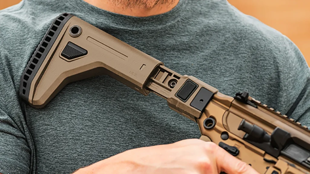 Think your optic, charging handle, or fire control setup is too quirky? The UCS laughs at your “non-standard” configuration and says, “Bring it on.” This stock was designed with a reversible hinge that folds to either the left or right. Plus, Magpul baked in a generous 5° drop to clear bulky charging handles and janky ejection ports, avoiding that awkward “back inches of your knuckles” moment when you thought you had perfect clearance.