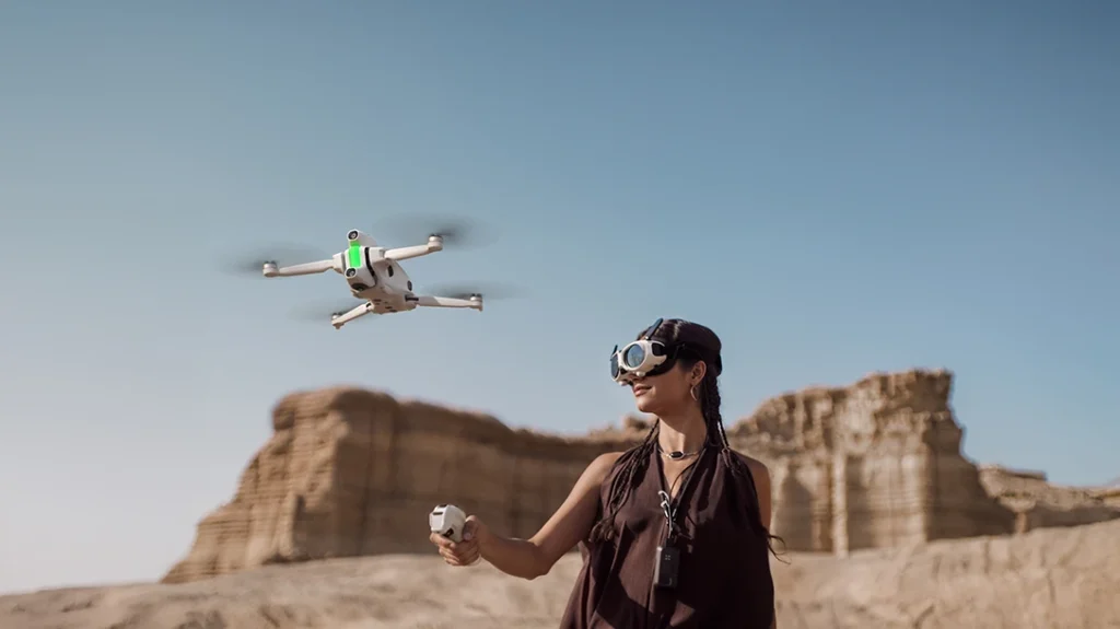 The real magic happens with the included headset. This headset gives the user a live, first-person view of what the drone sees, but with a twist: the user can look in any direction, and the view in the headset will follow their gaze, completely independent of the drone’s flight path. This means you can fly forward while simultaneously looking 360 degrees around the drone, creating an incredibly immersive and intuitive piloting experience.