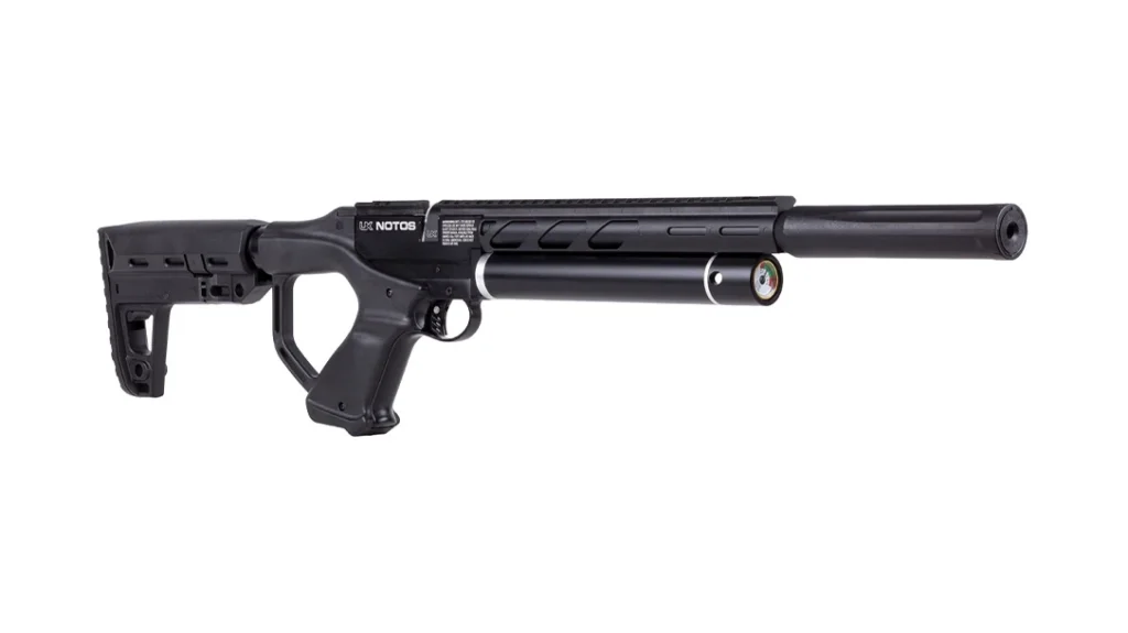 The Umarex Notos Carbine offers outstanding features at a very reasonable price. The Notos is a .22-caliber pre-charged pneumatic (PCP) air rifle that delivers impressive power from its short 11.75-inch barrel. In fact, it fires a 12-grain .22-caliber pellet at about 700 fps. This makes the Umarex Notos suitable for small game hunting, plinking or target shooting. The Notos’ fixed, high-pressure air tank fills to a maximum pressure of 3,625 psi. It has a seven-shot, auto-indexing rotary magazine and side-lever cocking, both of which help provide a smooth transition to the next shot. MSRP is $260.
