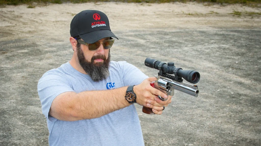 That mass is your friend. Heavy, scoped revolvers sit back down on target faster than their lighter cousins, which matters when you stretch to one hundred yards and beyond.