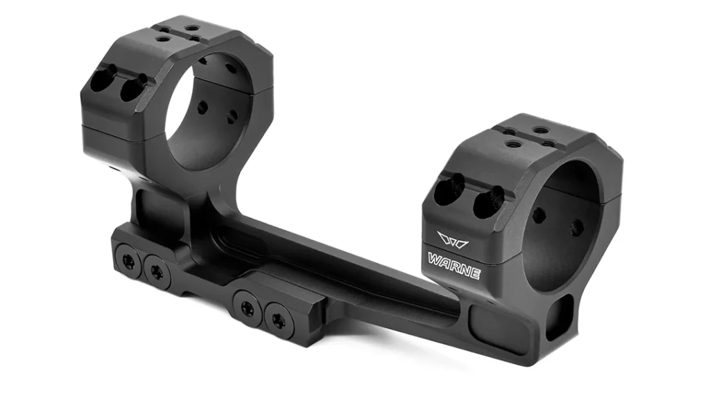 According to Warne “The Skyline precision cantilever mount has been engineered from the ground up with the MSR rifle shooter/competitor in mind.” Machined from 7075 T6 aluminum billet, the Skyline offers a STANAG rail interface which gives more precise mount alignment and return to zero capability than a traditional Mil Spec 1913 Picatinny. The Skyline is also designed to accept accessories which long range shooters need such as precision mount levels,data card holders and accessory rails. The Skyline is available to fit 30mm, 34mm and 35mm tubes and is available in 20 MOA slope for longer ranges.