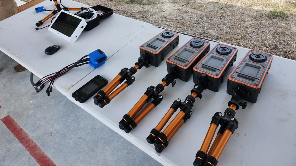 Back at the benches, Scott had all four feeds from the different cameras connected on one screen, so we could see all four targets. Since each Longshot camera was placed just a few yards away from each target, the view of each camera was pretty well isolated to just the target it was in front of.