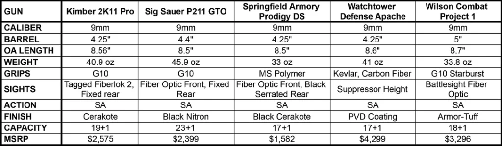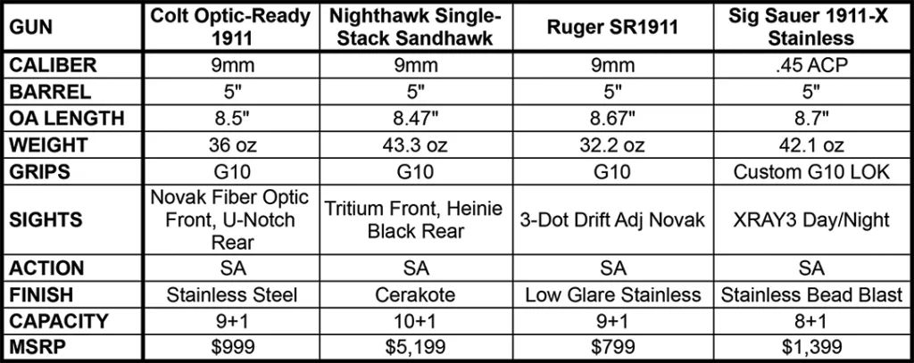 Single-Stack 1911s Specifications:
