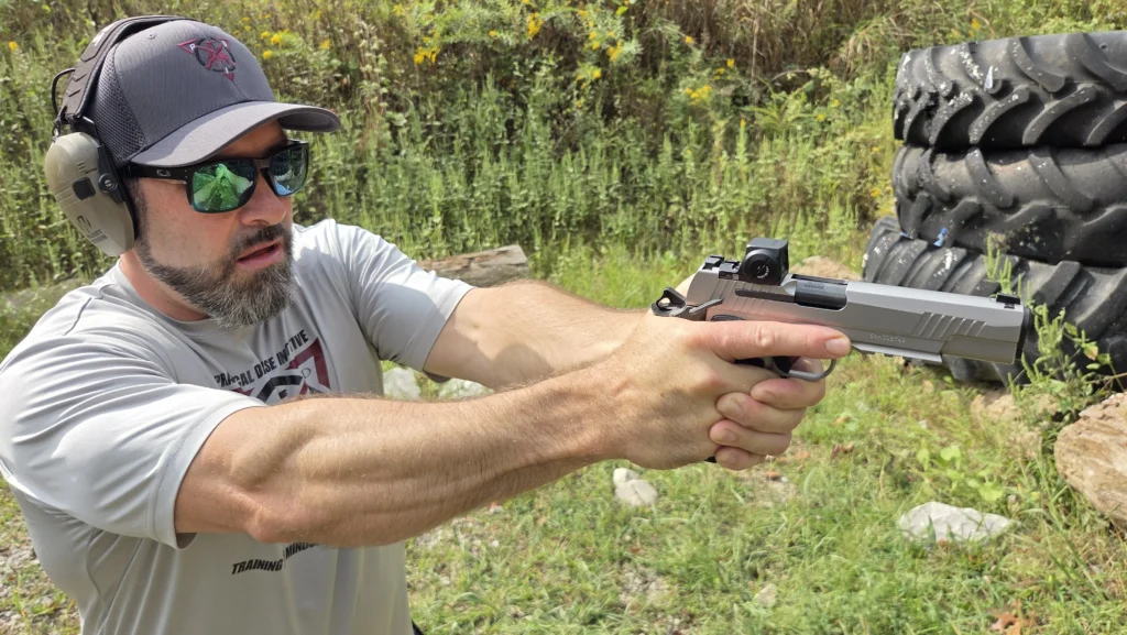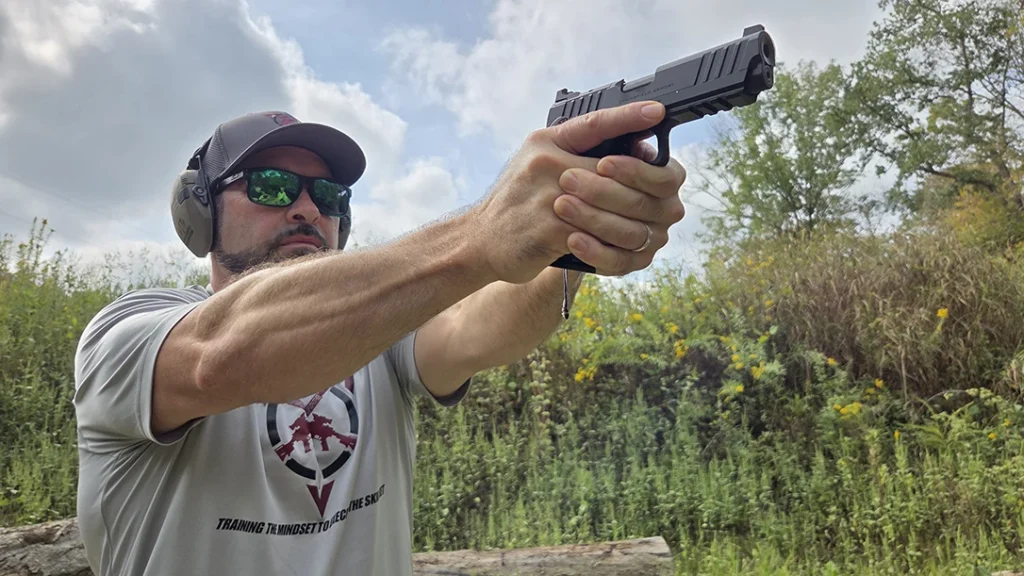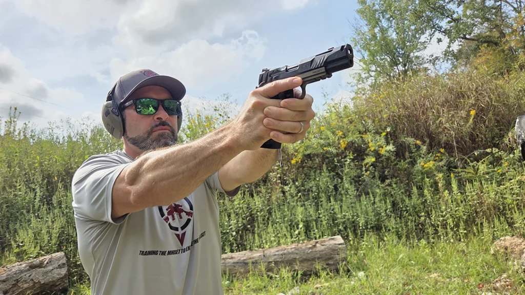 With me on the range were my colleague Fred Mastison and my brother, Scott Hunter. Mastison is a veteran gun writer, content creator, and firearms instructor with over 30 years of experience in the industry. Hunter is a firearms instructor and founder of Practical Defense Initiatives, where he trains individuals in real-world self-defense and home-defense tactics.