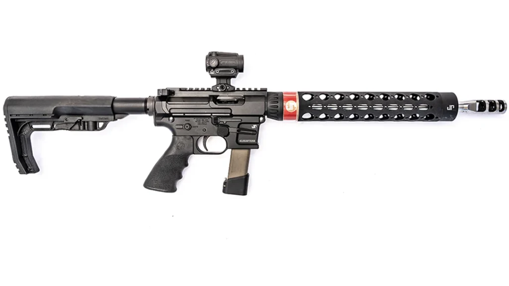 This was the favorite lower receiver of all the AR platforms. Everything ran flawlessly and the shooters just kept going back to it to run again and again. One evaluator lamented that he wished all of the controls were fully ambidextrous and another found the bolt catch/release was recessed and a little harder to access than a standard one. Other than that, no one could find anything they didn’t love about the gun. In the end, it was the price point that put this gun at #1. The JP-5 was equally impressive, but the base model WC AR9 (without the White Kodiak Camopaint job) is over $1,000 cheaper than the base JP-5. That is significant.