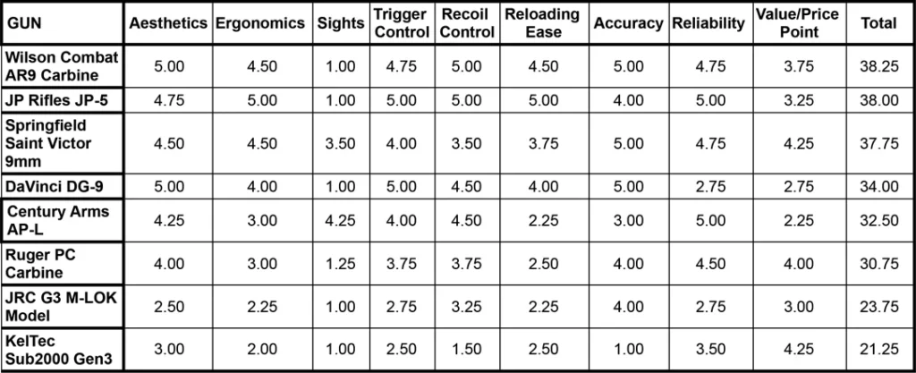 Ballistic’s Best 2025 Pistol Caliber Carbines Scoring