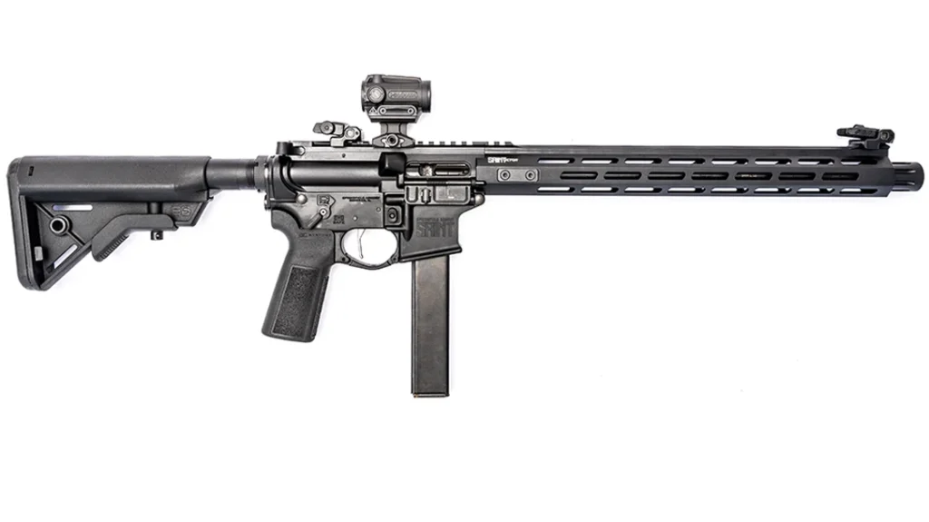 Number three on our roundup was again a surprise. The Springfield Saint Victor 9mm uses the metal Colt SMG style magazines instead of Glock mags. I thought this would make it “outdated.” Instead, its utter reliability and good price point made it a crowd favorite. The familiarity of the basic AR platform made it easy for everyone to run.