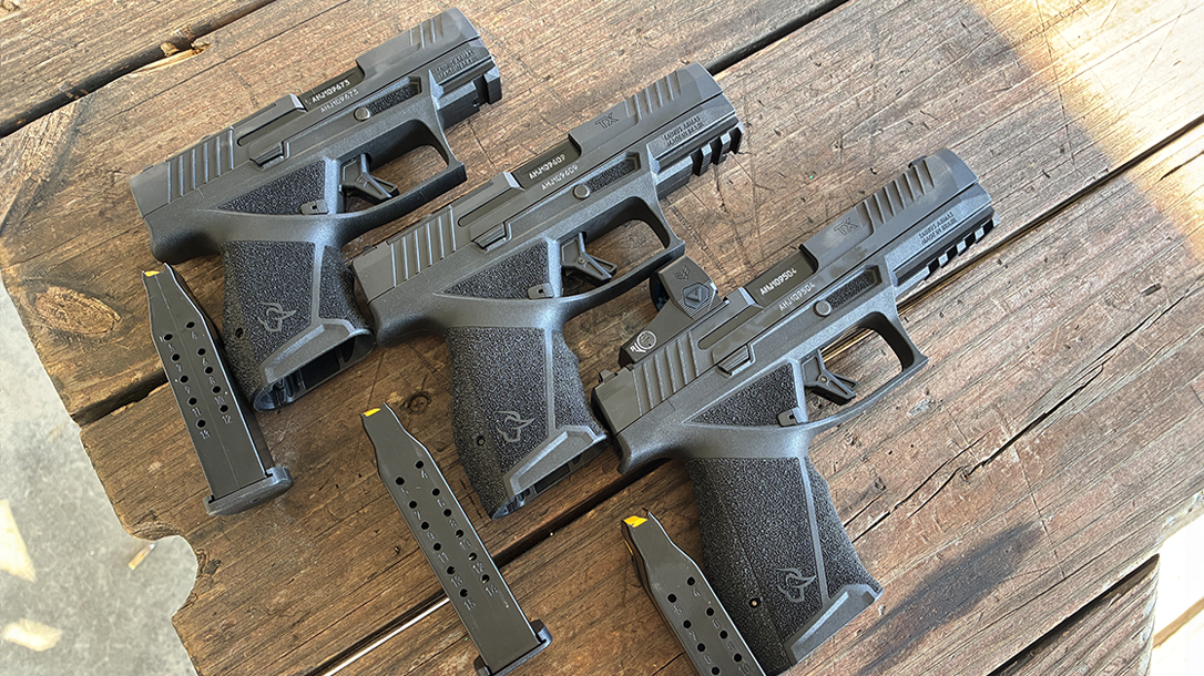 I was fortunate to have been selected as one of the earlier evaluators of the TX9, receiving each model—Full Size (4.5-inch barrel and flush fitting 17-round magazine), Compact (4-inch barrel and flush fitting 15-round magazine), and Subcompact (3.4-inch barrel and flush fitting 13-round magazine)—a few months ago. Taurus gave me carte blanche to run the pistols hard. This was more of a challenge than guidance, really. Holsters and red dots arrived with the three TX9s, making sure there were no excuses.