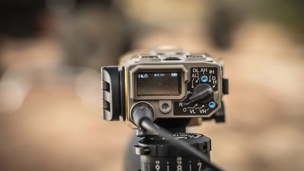 This durability capability runs all the way to the OLED screen, which isn’t affected by cold temperatures like a LCD screen is. You an also see the screen while wearing polarized glasses. Sounds like a small thing but that’s massive. The unit runs on a CR123 battery and comes with rechargeable batteries, a wired trigger, reflective alignment targets, and charging cables for the batteries.