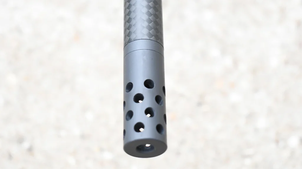 Aside from the specific chambering, Bergara Cure barrels have ⅝ x 24 TPI muzzle threads which makes them ready to host suppressors. By default, all barrels ship with Bergara’s “Omni” radial muzzle brake. This 7 PRC variant has a 22-inch barrel, which is slightly shorter than the “default” 7 PRC barrel length of 24 inches. It gives up some velocity in exchange for a little extra handiness and less overall length when fielding a suppressor. Many would consider it a sensible trade-off.