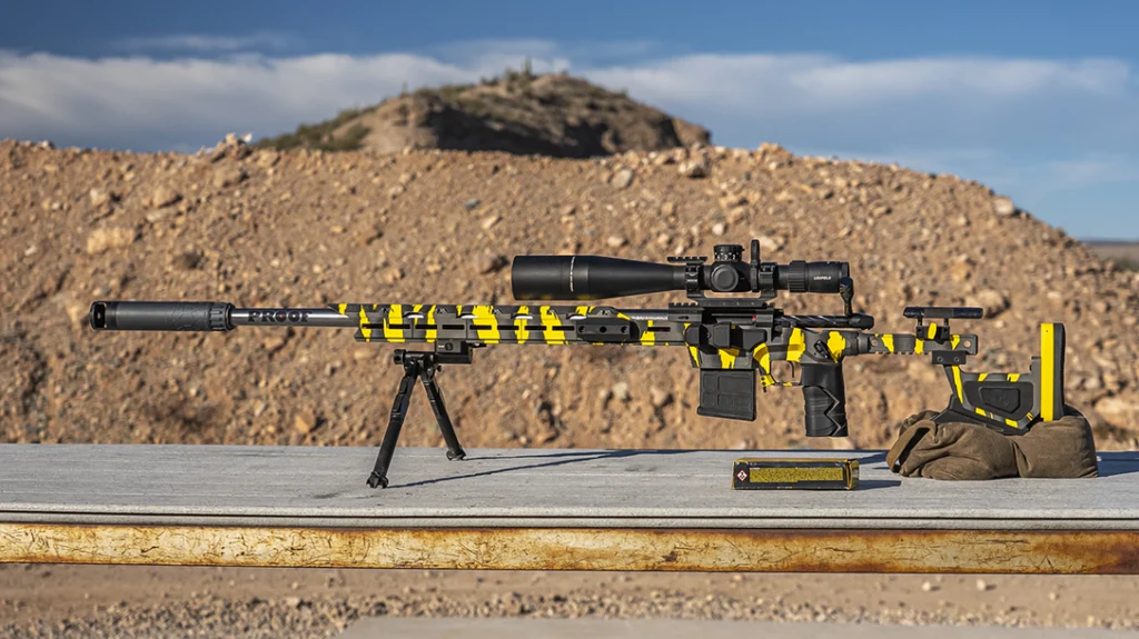 I placed the Theorem on a 6.5 Creedmoor. In this case a Falkor 7even competition build. It’s got a 24 inch barrel and weighs roughly 23 pounds. Abel Suppressor Co. is a sponsor of the PRS, and this is the type of rifle that fits the bill.