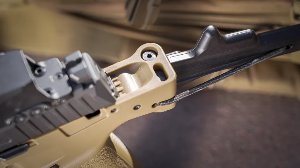I didn’t do accuracy testing with the unit. I didn’t feel it was necessary. It’s like 300% more stable than shooting the P365 in its pistol configuration which, by the way, is still possible with the Raider chassis. I got to be pretty proficient with deployment too and was amazed at just how quickly you can go from a low ready to “shouldered-to-fire”.
