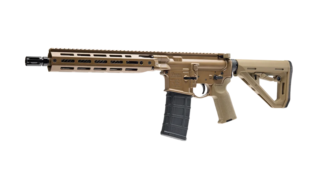 Bear Creek Arsenal focused on the hunting market with its new AR. Available in .30-06, 270 Win, and 300 Win Mag, you are equipped to take down some big game animals with these calibers. It’s offered in 20 and 24-inch barrel lengths. Each rifle includes a Magpul MOE Plus grip and MOE stock. The 1:10 twist .300 Win Mag version features a 20-inch parkerized, lightweight barrel and a rifle-length gas system. This specific model is outfitted with a right-side charging handle.