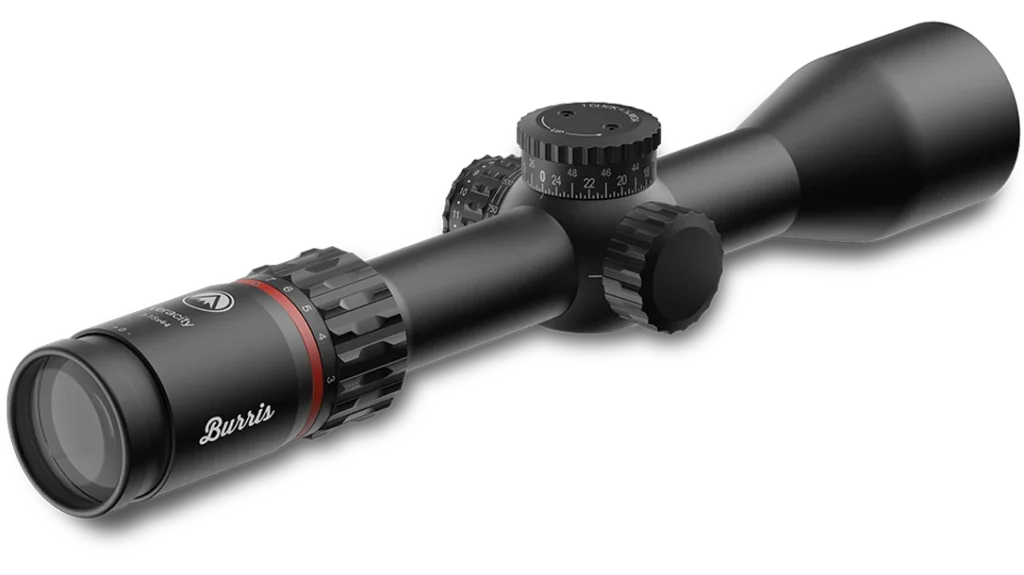 Premium, award winning line of hunting riflescopes. Now with R.E.D. (Rapid Enagement Design). A red ocular accent distinguishes this line from promoted Veractiy products along with more aggressively designed turrets and magnification ring. They feature 5 power magnification (2.5-12×42, 3-15×44 and 5-25x50mm).  HD glass with multicoated lenses, and rugged design. The Plex reticle dot is now fiber optic and they offer more complex reticle designs as well. Accompanied by their Forever Warranty that extends worldwide.