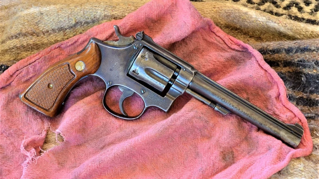 I started searching the interweb gun auctions and eventually found a pre-Model 17, K22 revolver with a 6-inch barrel and square butt. Normally, these are beautiful guns, but my auction gun looked as though a fisherman had put his gun in a tackle box and forgotten it for many years. The outside was covered with rust and pitting, but surprisingly the barrel and cylinder chambers were not too bad. The price I obtained this gun for made this an affordable experiment.